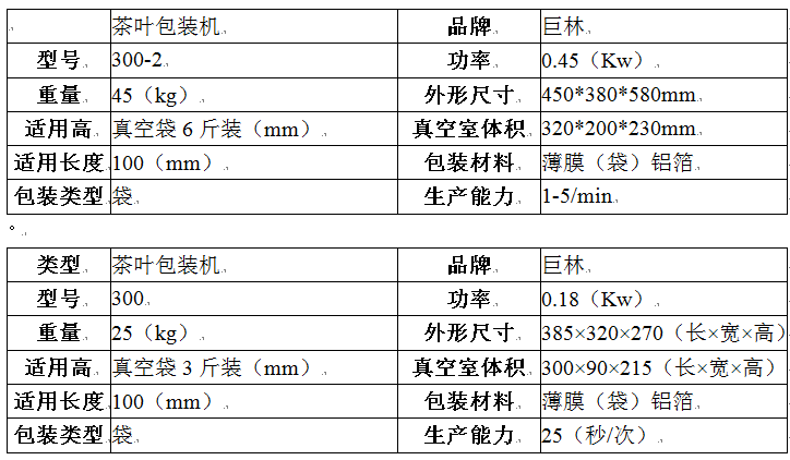 • 300型3斤茶叶真空包装机上市使用.该机做到能真空、封口等一体化全自动操作,具有包装速度快、体积小、低噪音、低能耗,操作简单等特点。解决了茶叶小包装真空的一系列烦琐手工操作问题、节省人力物力。